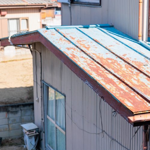 台風後に一部が飛散したスレート屋根を、軽量金属屋根へ葺き替え。断熱性も上がり、夏場の暑さも軽減されました。